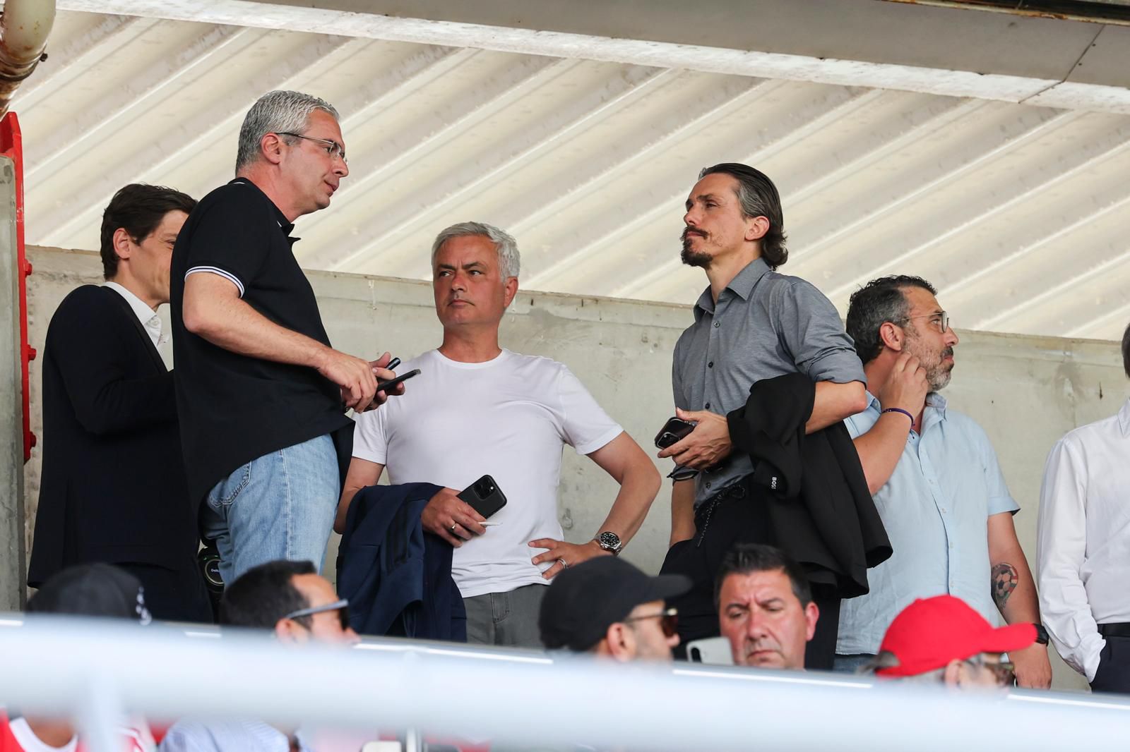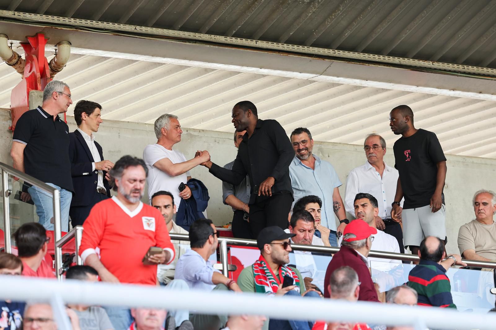 João Veloso e Henrique Araújo também marcam no Benfica Campus assim como os antigo jogadores das águias Ljubomir Fejsa e Pedro Mantorras. O antigo internacional angolano, que representou as águias entre 2001 e 2010, cumprimentou José Mourinho com um abraço.