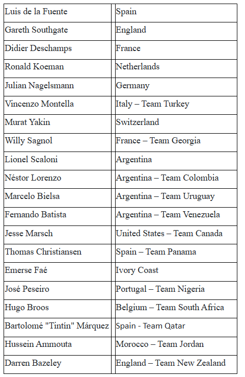 O técnico luso integra a mesma lista que nomes como Luis de la Fuente (Espanha), Julian Nagelsmann (Alemanha), Marcelo Bielsa (Uruguai), Ronald Koeman (Países Baixos) e Scaloni (Argentina).