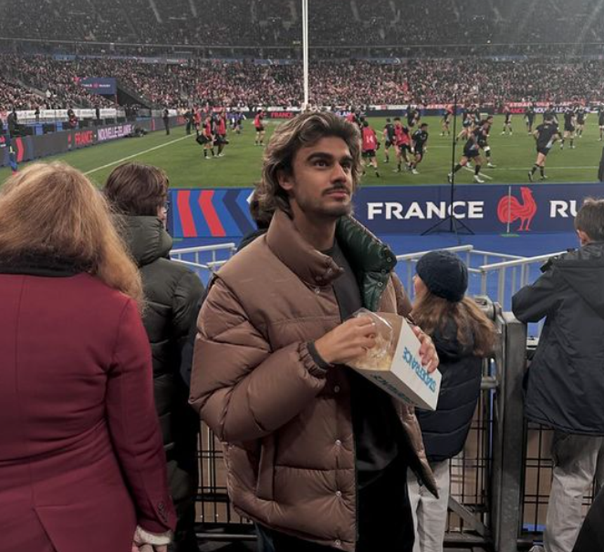 Jota assiste ao vivo jogo de râguebi entre França e Nova Zelândia