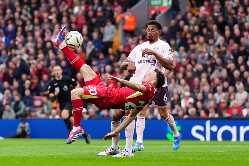 Diogo Jota foi titular na formação dos reds e foi dele que surgiu a jogada para o primeiro golo da partida. Num tento 100% made in FC Porto, aos 13 minutos, aquilo que começou como um canto para o Brentford terminou numa arrancada magistral do internacional português que, já depois da linha do meio-campo, desmarcou Luis Díaz e coube ao colombiano fazer o 1-0 para o Liverpool. Ao intervalo, a vantagem era dos comandados de Arne Slot.