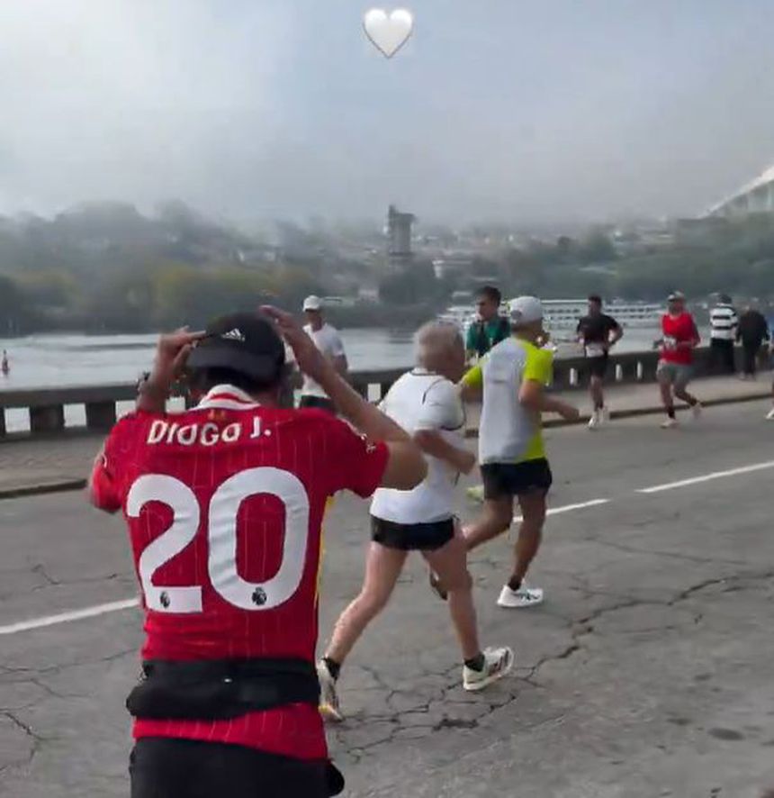 Aos 29 anos, Bruno Duarte já deixou de jogar, mas arranjou outra forma de homenagear o amigo Jota fora dos estádios: este domingo, véspera de se assinalarem quatro meses desde a morte de Jota e do irmão André Silva num acidente de viação em Espanha, correu a maratona do Porto com a camisola de Jota no Liverpool vestida.