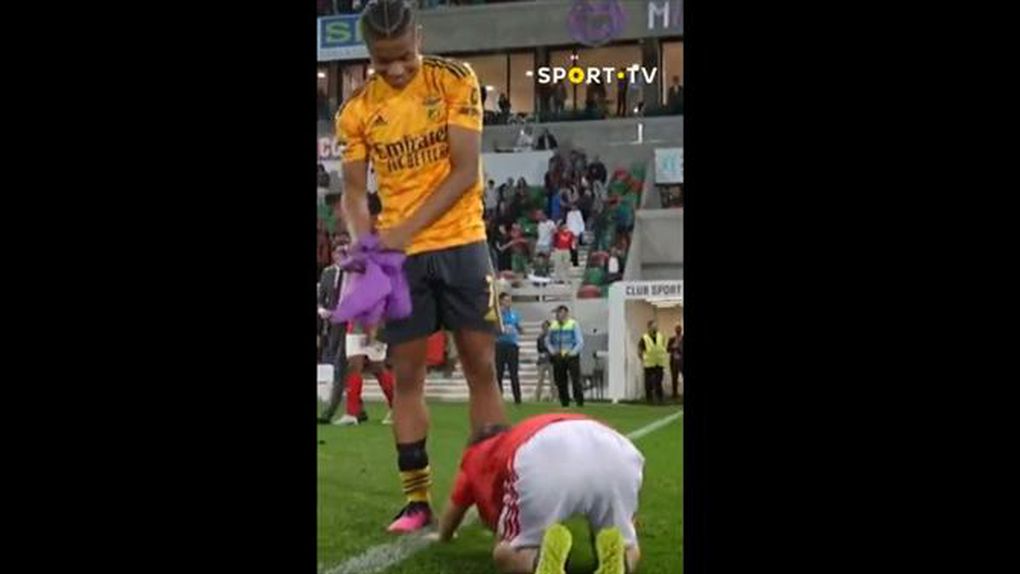 Um jovem adepto ajoelhou-se aos pés de Neres ?? #sporttvportugal #LIGAnaSPORTTV #ligaportugalbwin #csmaritimo #slbenfica #DavidNeres pic.twitter.com/JZfyTZfENX