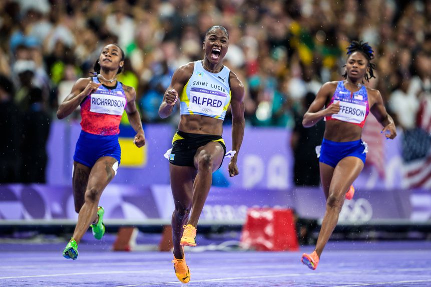 SAINTE-LUCIE TIENT LA PREMIÈRE MÉDAILLE OLYMPIQUE DE SON HISTOIRE, ET C’EST L’OR DU 100 MÈTRES FÉMININ REMPORTÉ PAR JULIEN ALFRED 🇱🇨🥇