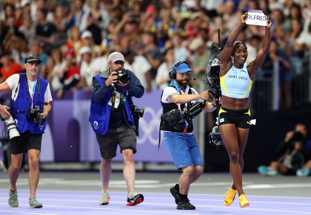 Em Santa Lucia, a pequena ilha/país nas Caraíbas que tem 180 mil habitantes e onde Julien Alfred nasceu há 23 anos e viveu na capital Castries antes de se mudar para os Estados Unidos para estudar e treinar na Universidade do Texas, haviam montando alguns ecrãs gigantes para que a população seguisse os Jogos de Paris-2024.
