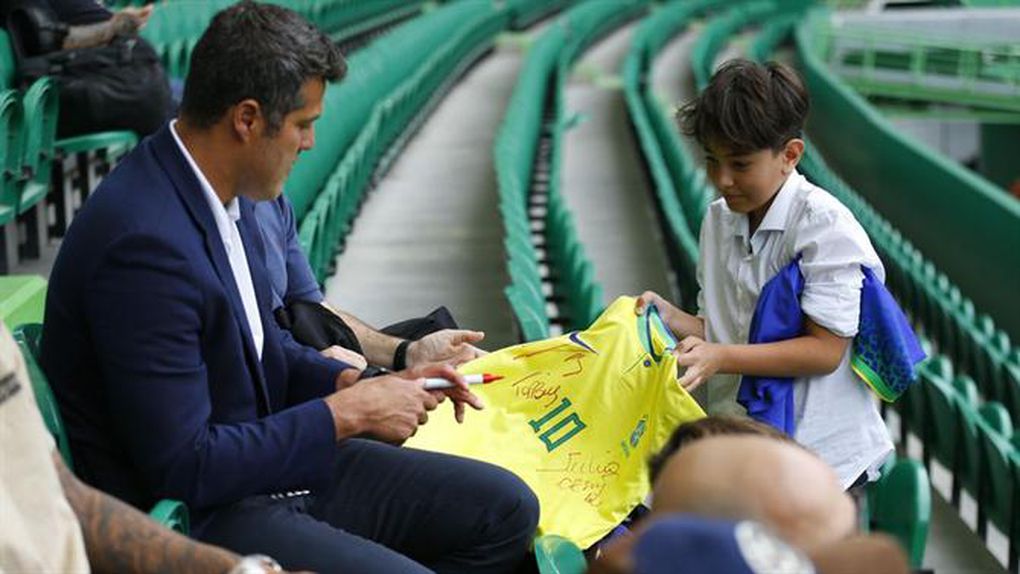 Nas bacadas eram mais de 200 os brasileiros que não quiseram perder a oportunidade de verem as suas estrelas, mesmo que ao longe. Entre eles Júlio César, guarda-redes que brilhou no Inter e jogou no Benfica e foi dando autógrafos aos mais jovens.