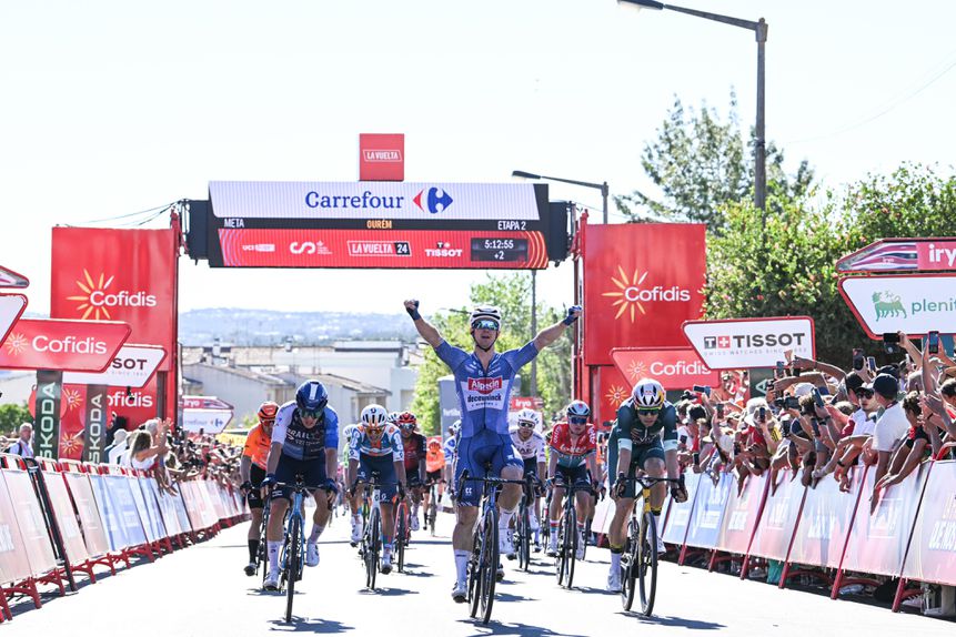 Kaden Groves (Alpecin-Deceunick) venceu a segunda etapa da Volta a Espanha, este domingo, impondo-se em sprint no pelotão compacto na meta em Ourém, após uma extensa jornada de 194 quilómetros desde Cascais, cumprida a uma média baixa (37,2 km/h) para a planura do percurso, refletindo a oposição do vento forte ao avanço dos corredores.