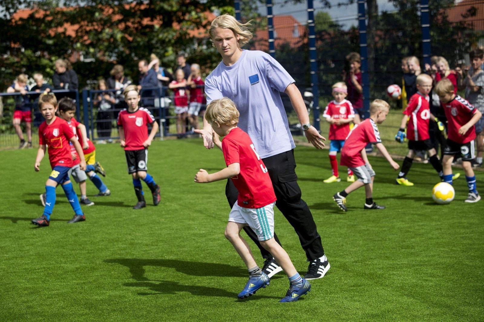 O avançado dinamarquês venceu o prémio de Talento do Ano — também conhecido como prémio Johan Cruyff — nos Países Baixos em 2017, quando jogava pelo Ajax e, como recompensa, recebeu o direito a construir um relvado sintético num local à sua escolha. Altruísta, não pensou duas vezes quando escolheu Voel, pequena vila dinamarquesa de onde é natural, como o sítio onde queria fazer a diferença.