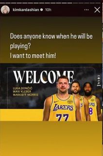 Kim postou no Instagram uma foto de Luka Doncic com a nova camisola dos Lakers, número 77. Espera-se que o esloveno possa estrear-se na segunda-feira, no jogo contra os Utah Jazz.