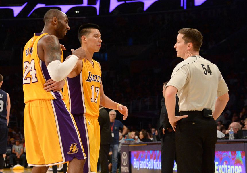 Convidado no podcast Above the Rim, Jeremy Lin revelou um incidente com a superestrela Kobe Bryant, então seu colega nos Los Angeles Lakers, que ganhou proporções inesperadas. Kobe queria que Lin fizesse uma falta para parar o relógio, quando o treinador Byron Scott lhe tinha dito para não o fazer. Devido às instruções contraditórias, hesitou e, após notar a linguagem corporal do companheiro de equipa, decidiu abordá-lo.