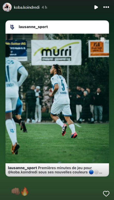 Koindredi cumpriu os primeiros 45 minutos ao serviço do Lausanne, na Taça da Suíça (X/Lausanne)