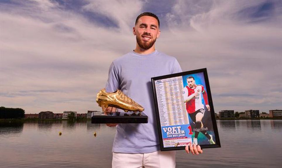 Orkun Kokçu viajou para os Países Baixos e recebeu este domingo, numa cerimónia que decorreu nos arredores da sua cidade natal, Haarlem, a bota de ouro correspondente à eleição da publicação Voetballer para melhor jogador do último campeonato neerlandês, pelo Feyenoord, de onde se mudou para o Benfica por €25 milhões, mais €5 milhões possíveis em bónus por objetivos.