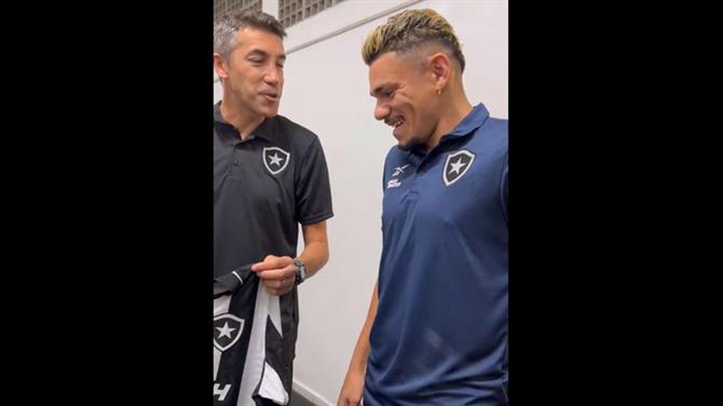 Tiquinho Soares recebeu, este domingo, uma camisola das mãos de Bruno Lage, novo treinador do Botafogo, em comemoração dos 50 jogos que o avançado vai atingir ao serviço do fogão, frente ao Coritiba, na 17.ª jornada do Brasileirão.