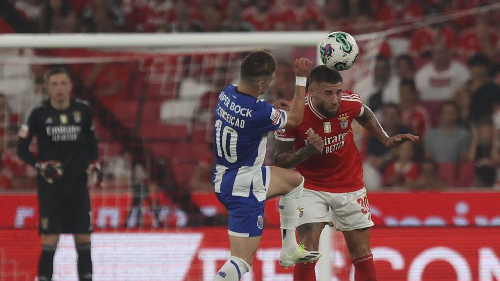 Em causa, o momento protagonizado entre o defesa-central do Benfica e o filho do treinador do FC Porto, Francisco Conceição, depois de este ter derrubado o argentino.