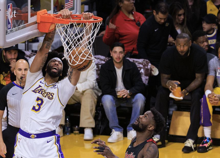 Anthony Davis marca enquanto LeBron James assiste no banco(IMAGO / ZUMA Wire)