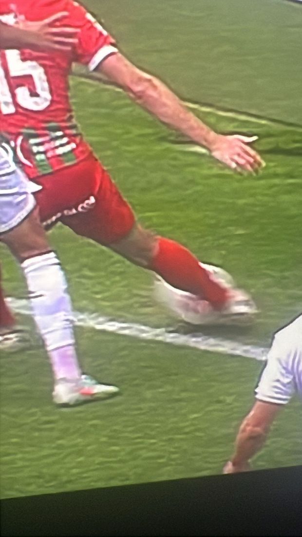 O momento do cruzamento tirado por Fábio China, que motiva protestos por parte do Leixões. Foto: D.R.