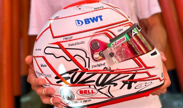 O francês Esteban Ocon estará ao volante do seu Alpine com capacete de design dedicado à corrida nipónica, que reproduz o traçado da pista de Suzuka e as cores da bandeira japonesa, o vermelho e o branco.