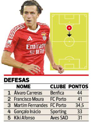 Destaque ainda para a estreia no top-10 de duas águias: Álvaro Carreras (subiu ao 5.º lugar e ao topo dos defesas após exibição fantástica em que até abriu o marcador de pé direito!) e Akturkoglu (8.º e decisivo no lance do 2-1 encarnado), numa jornada em que Geovany Quenda (cobrou o pontapé de canto de onde saiu o primeiro golo leonino) saltou quatro degraus para ser 15.º.