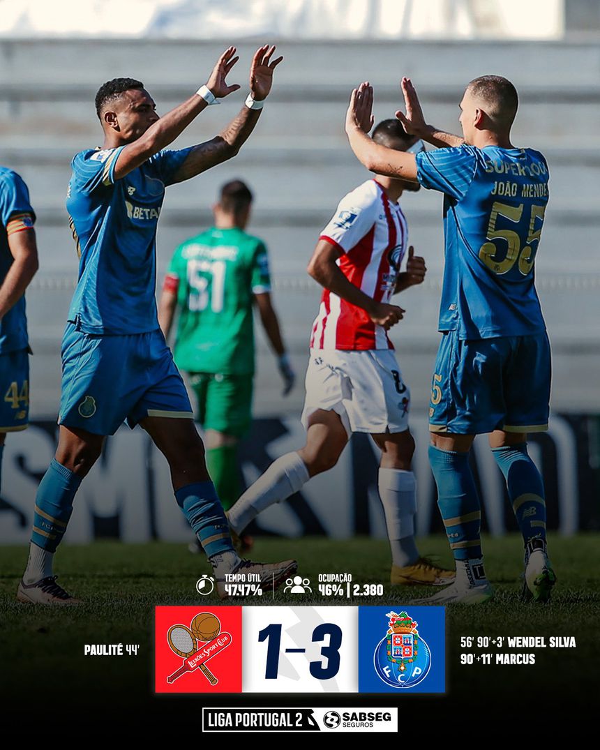 Liga 2: FC Porto B vence em Matosinhos com dois golos para lá dos 90'
