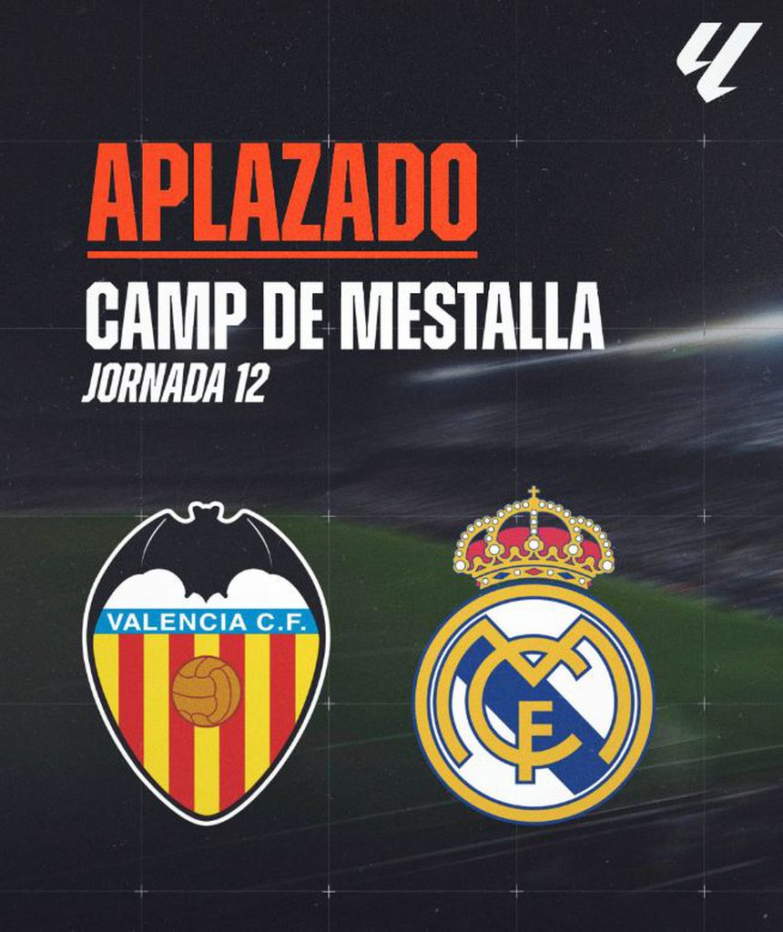 A La Liga acedeu ao pedido do Valência e adiou o jogo frente ao Real Madrid marcado para sábado, 2 de novembro, no Mestalla.
