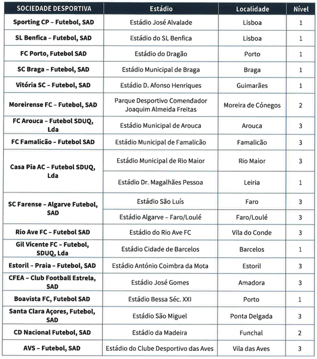 Todos os clubes que subiram de divisão - Santa Clara, Nacional, Aves SAD, Alverca e Felgueiras - também conseguiram o necessário licenciamento para participarem nas respetivas competições.