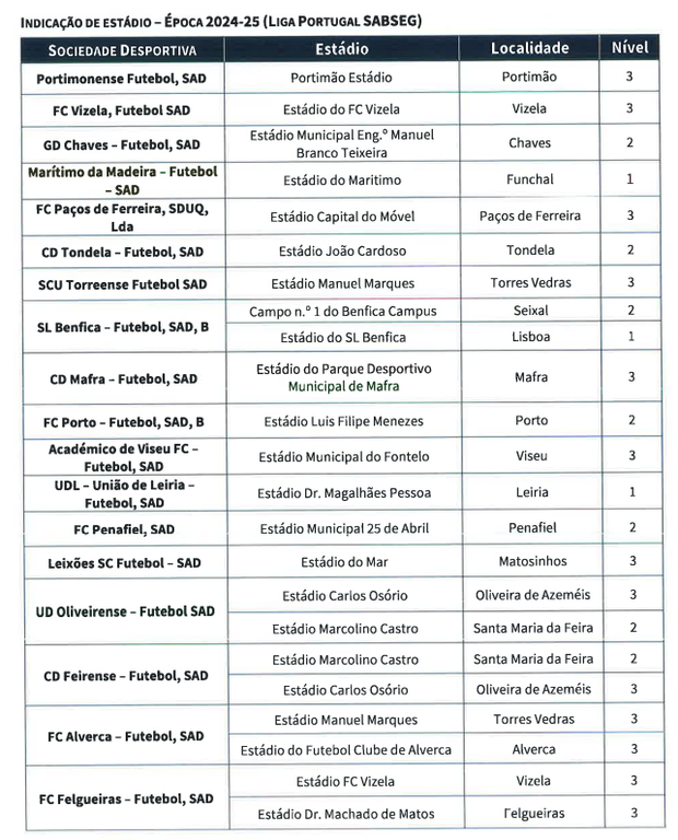 Já o Farense apresentou como opções o Estádio São Luís e o Estádio Algarve.
