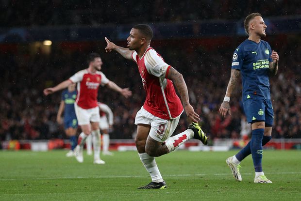 Entrada de rompante do Arsenal frente ao PSV (4-0). Três golos antes do minuto 40, colocaram os gunners na posição bem confortável de poder dar as rédeas do jogo ao PSV e descansar um pouco no segundo tempo. Bukayo Saka (8’), Leandro Trossard (20’) e Gabriel Jesus (38’) fizeram os golos. Assim foi. O Arsenal não carregou no acelerador e, ao minuto 70, o norueguês Martin Odegaard marcou o melhor golo da noite, num remate fulgurante de fora da área, com o pé esquerdo. Cédric e Fábio Vieira começaram o jogo do banco dos arsenalistas, mas o antigo jogador do FC Porto saltou para o relvado ao minuto 69, em substituição de Saka.