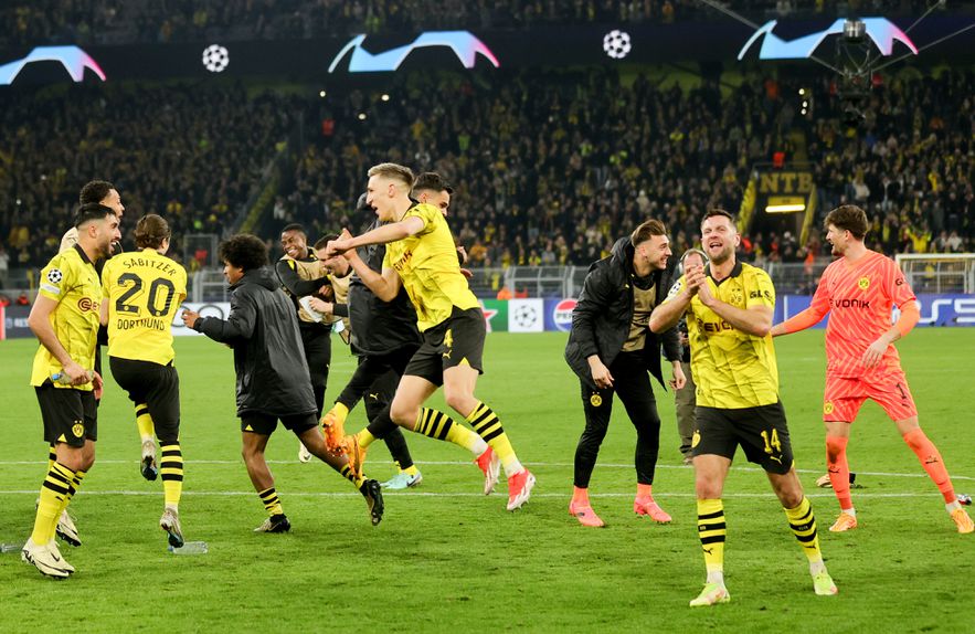 Depois de duas assistências, só faltava o dele. Apenas três minutos depois de assistir Fullkrug, Sabitzer fez explodir de alegria o Signal Iduna Park e marcou o 4-2, carimbando, pela segunda vez nesta partida, a reviravolta do Dortmund na eliminatória, mas, desta vez, foi mesmo para ficar. Os auri-negros resistiram até ao apito final e vão marcar presença nas meias-finais da prova milionária.