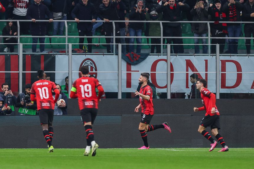 O Milan venceu, esta quinta-feira, o Slavia Praga, por 4-2, na primeira mão dos oitavos de final da Liga Europa.