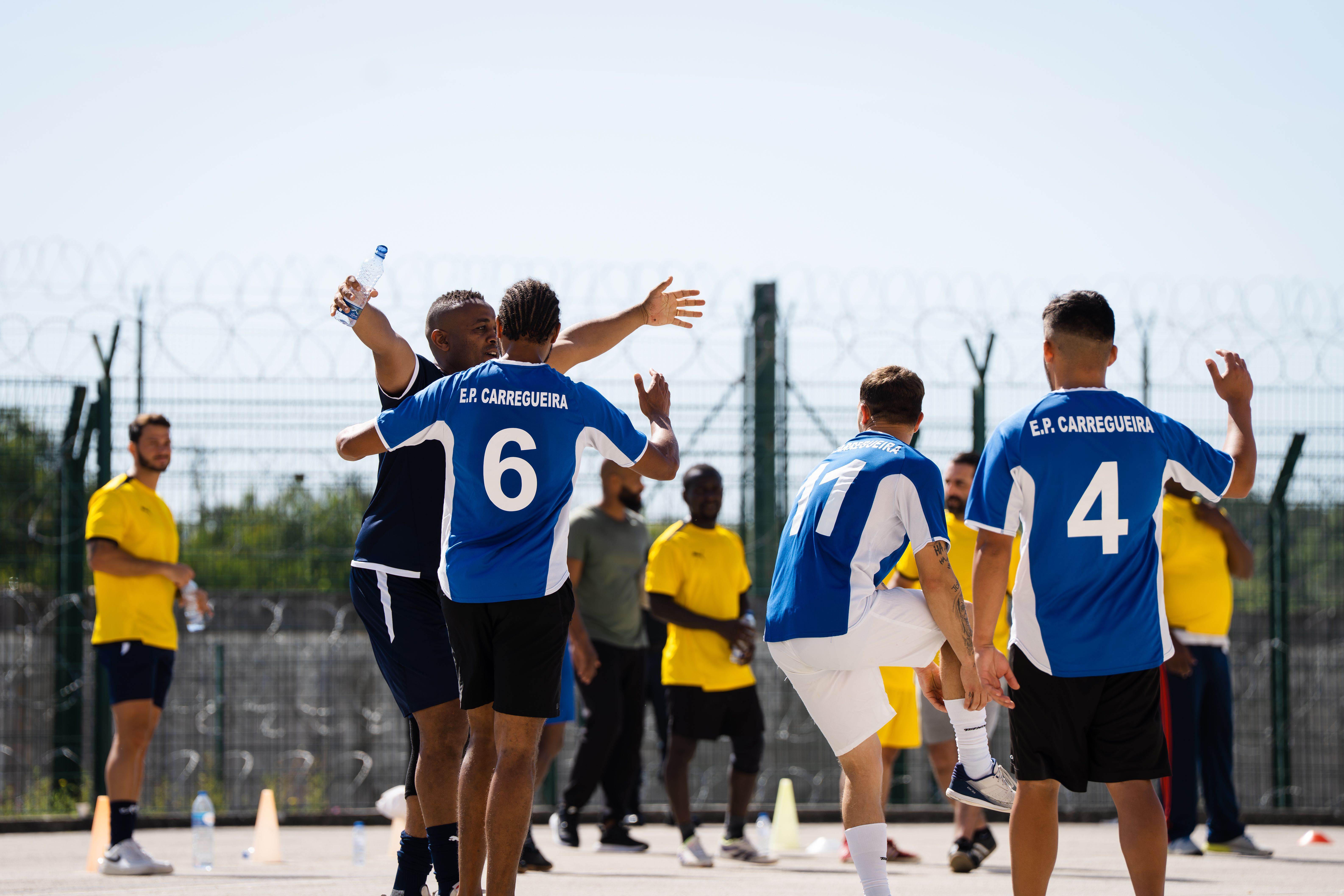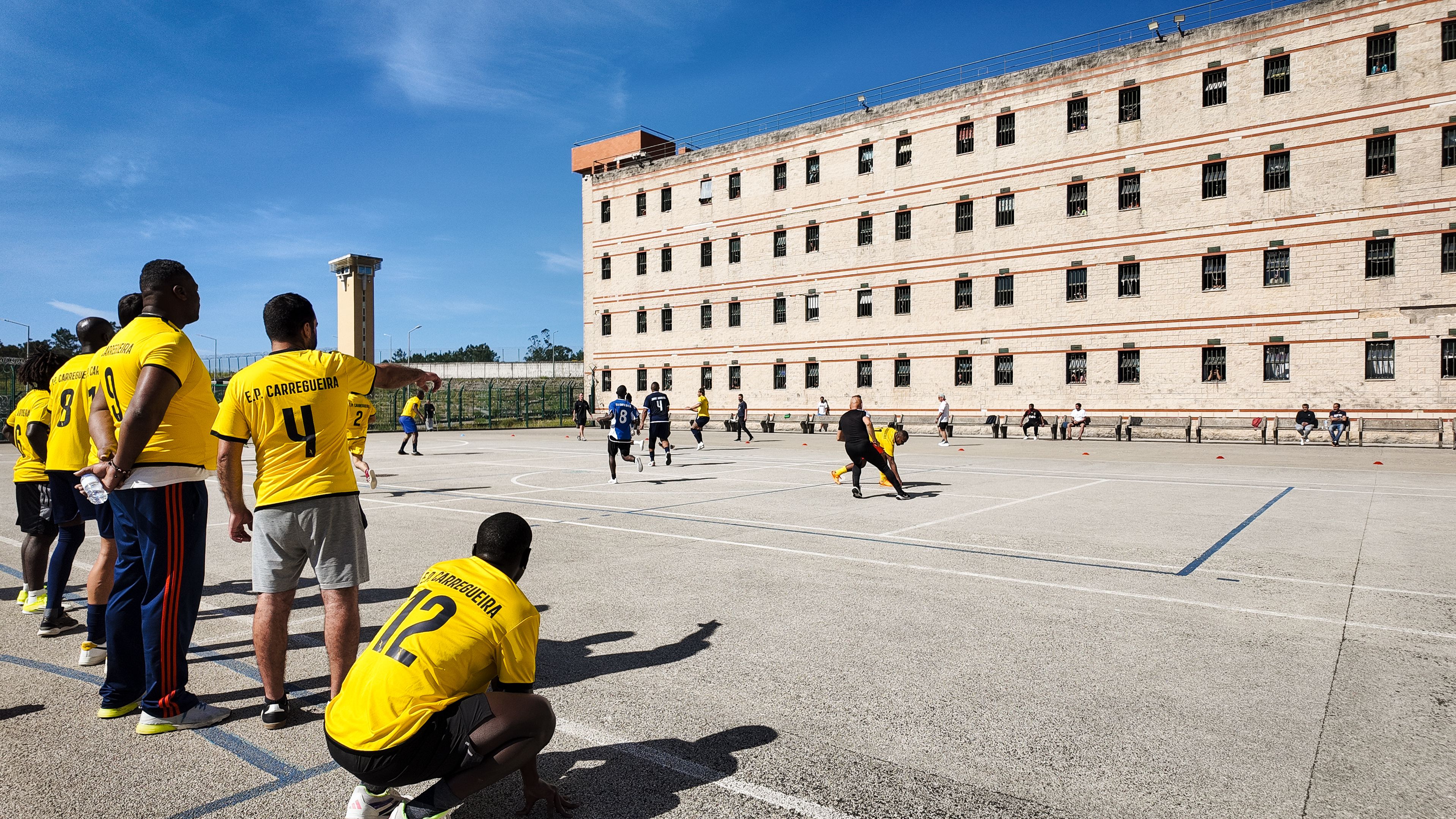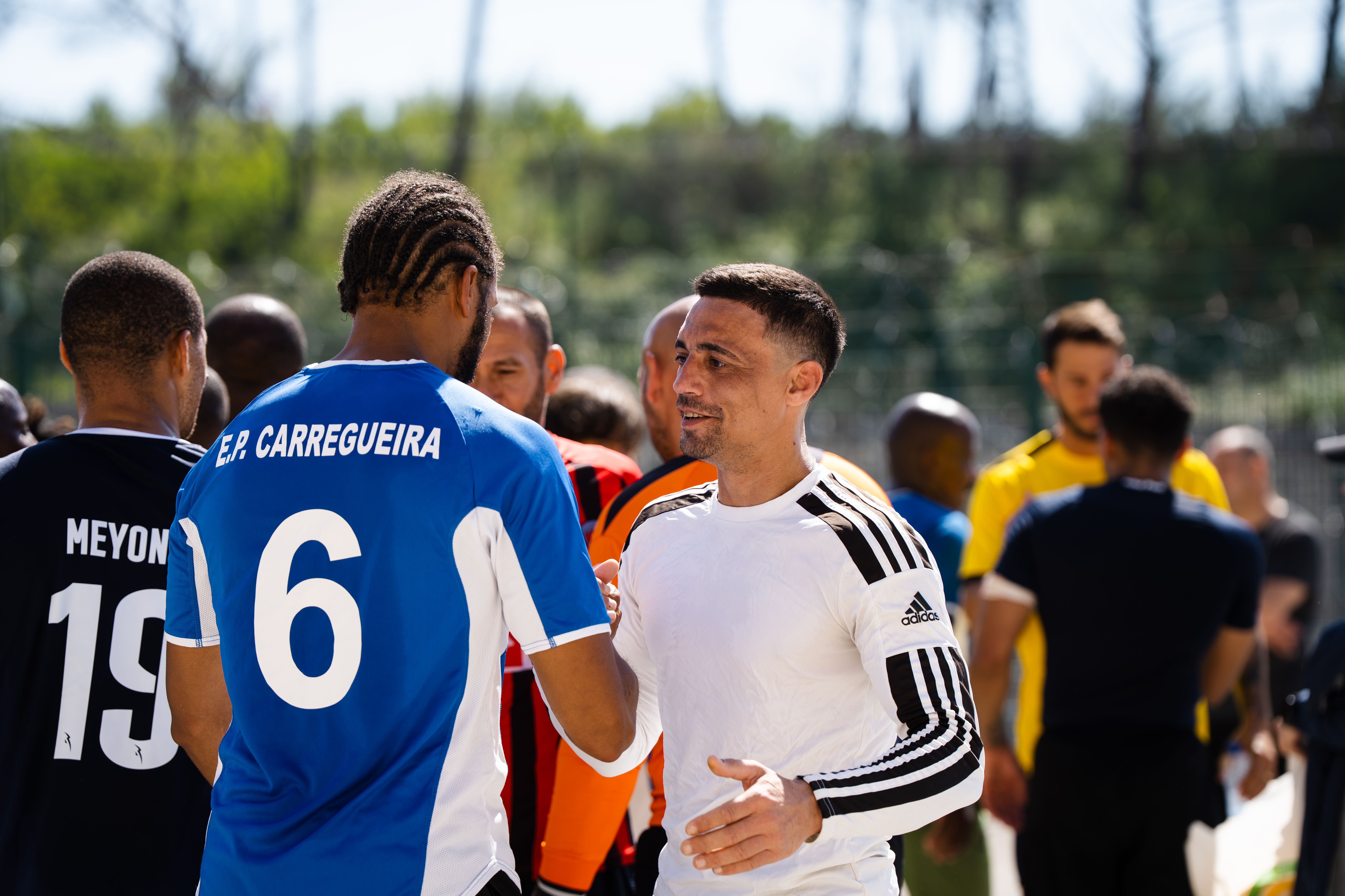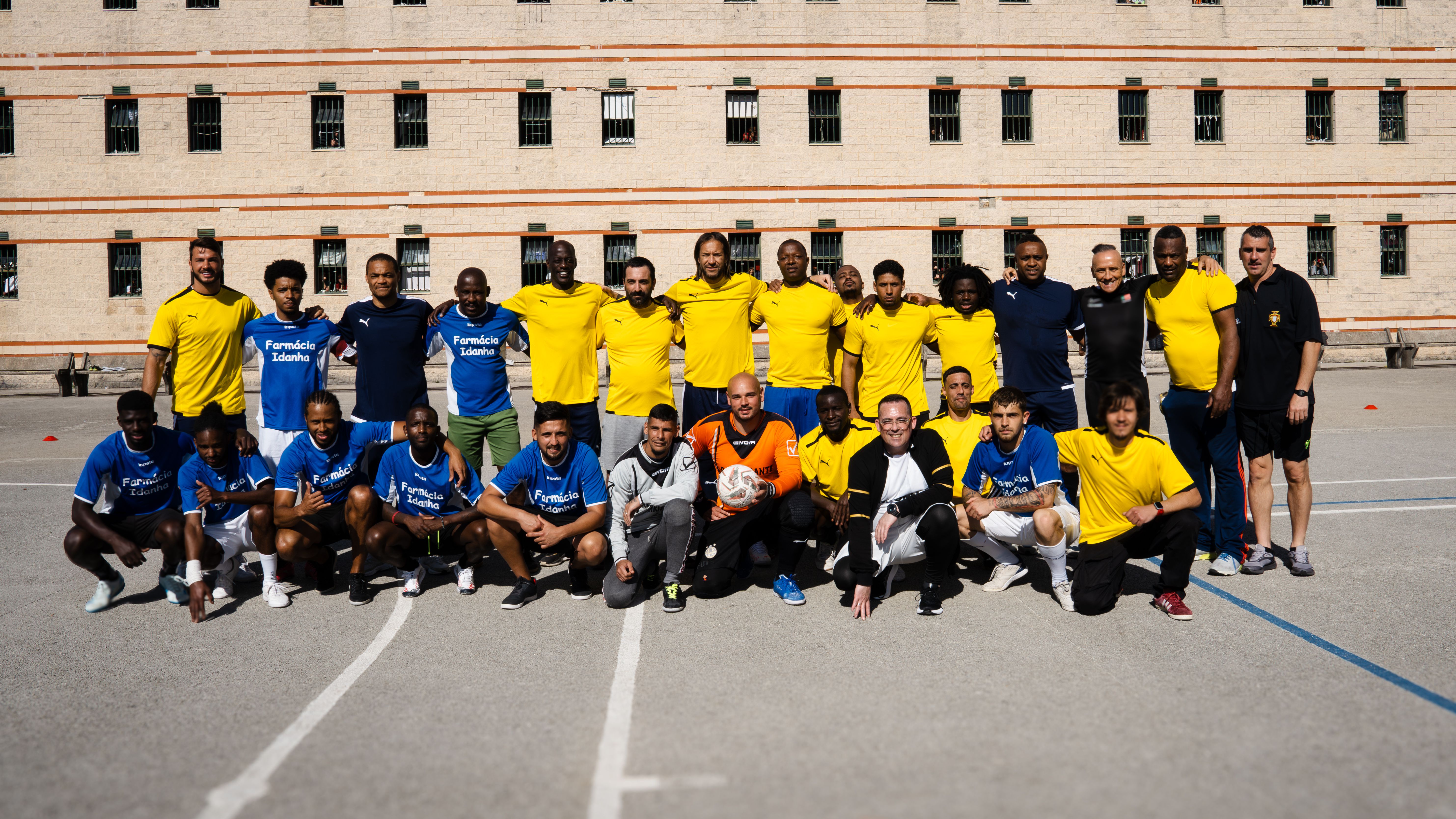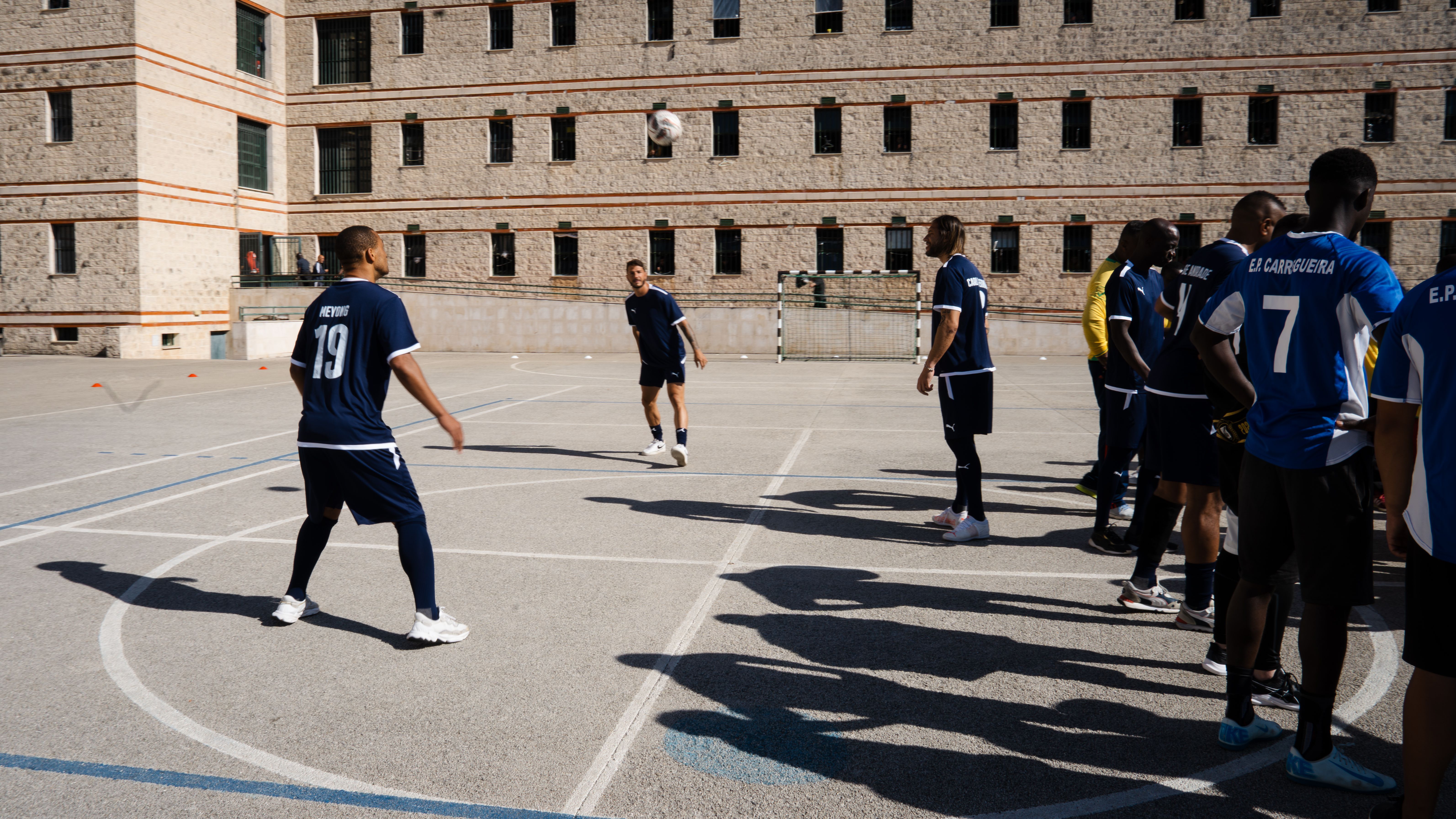 Jorge Andrade, Edinho, Carlos Fernandes, Meyong e Kléber, embaixadores da Liga Portugal, juntaram-se para suar a camisola, talvez mais do que esperavam, numa iniciativa da Fundação do Futebol, no Estabelecimento Prisional da Carregueira, nos arredores de Lisboa, para um jogo com uma seleção de reclusos. Um projeto piloto, que a Liga pretende replicar noutros estabelecimentos.