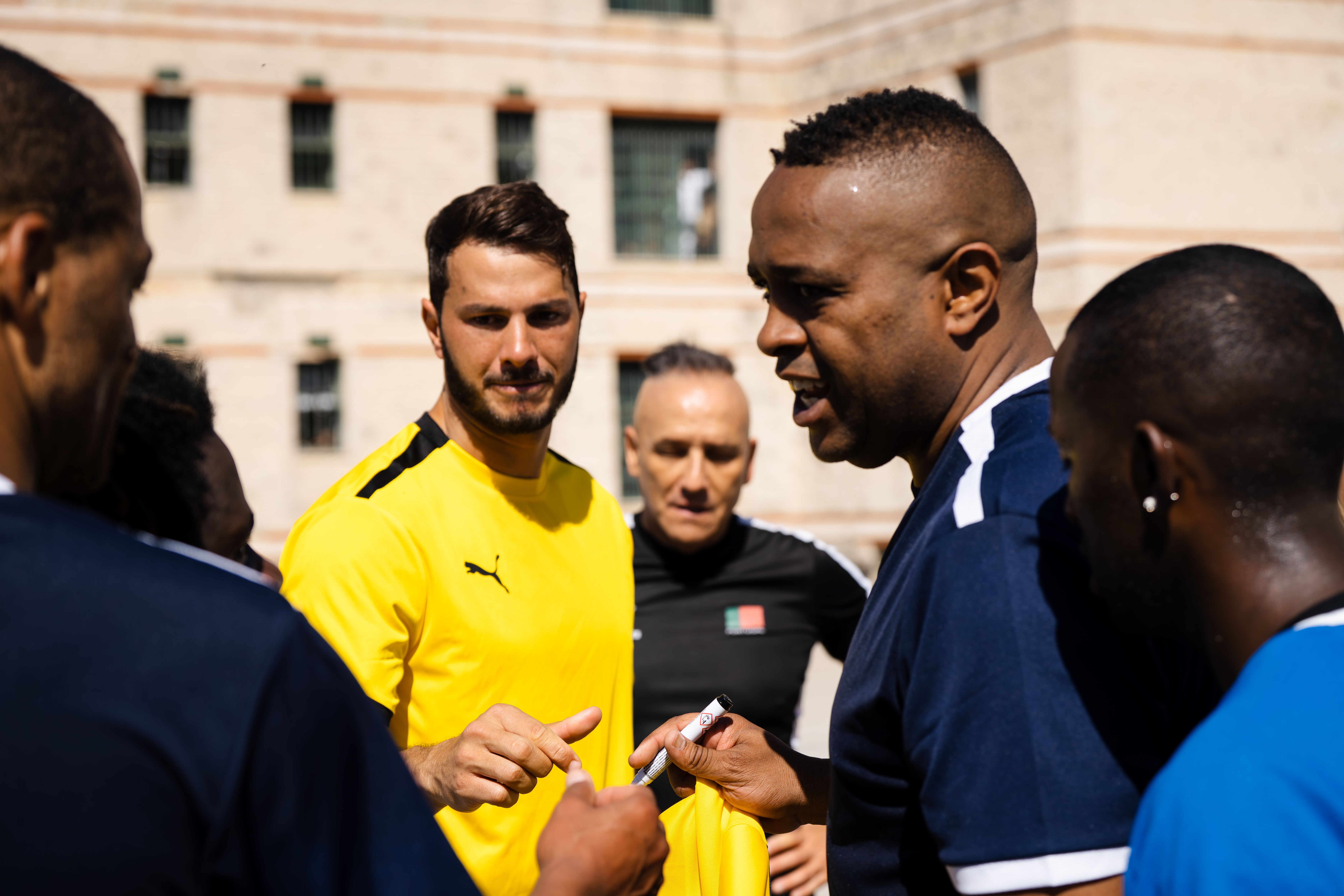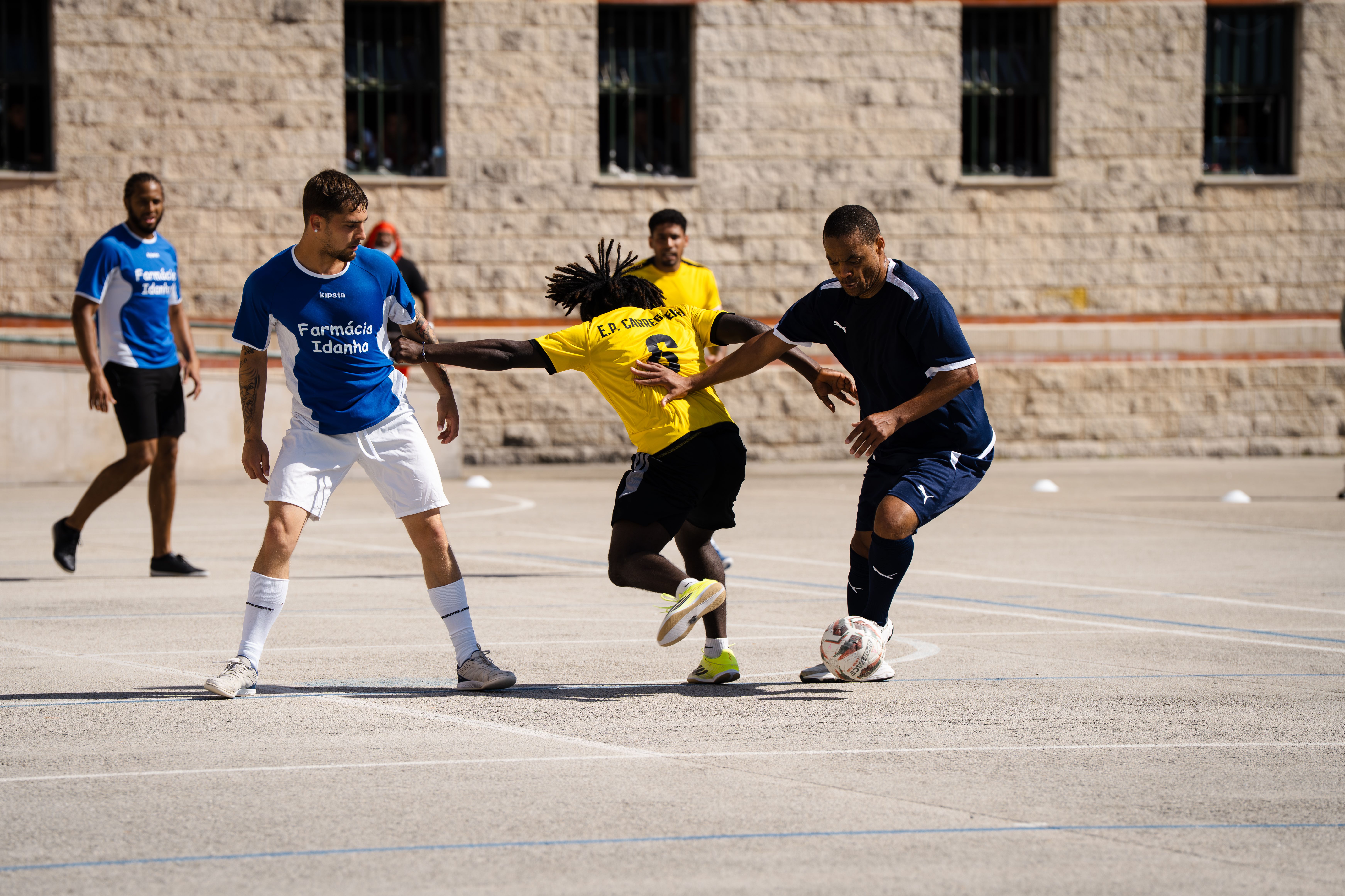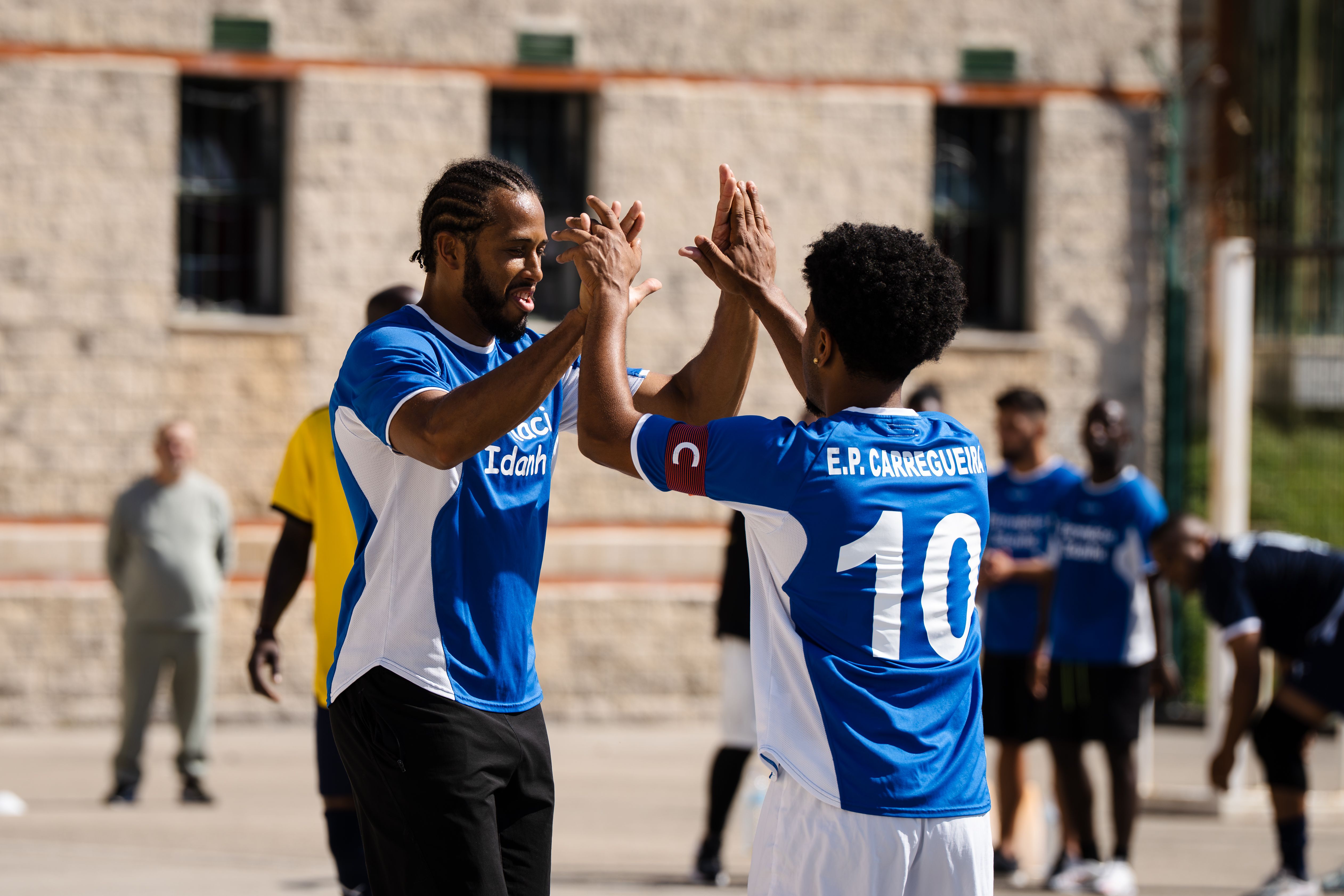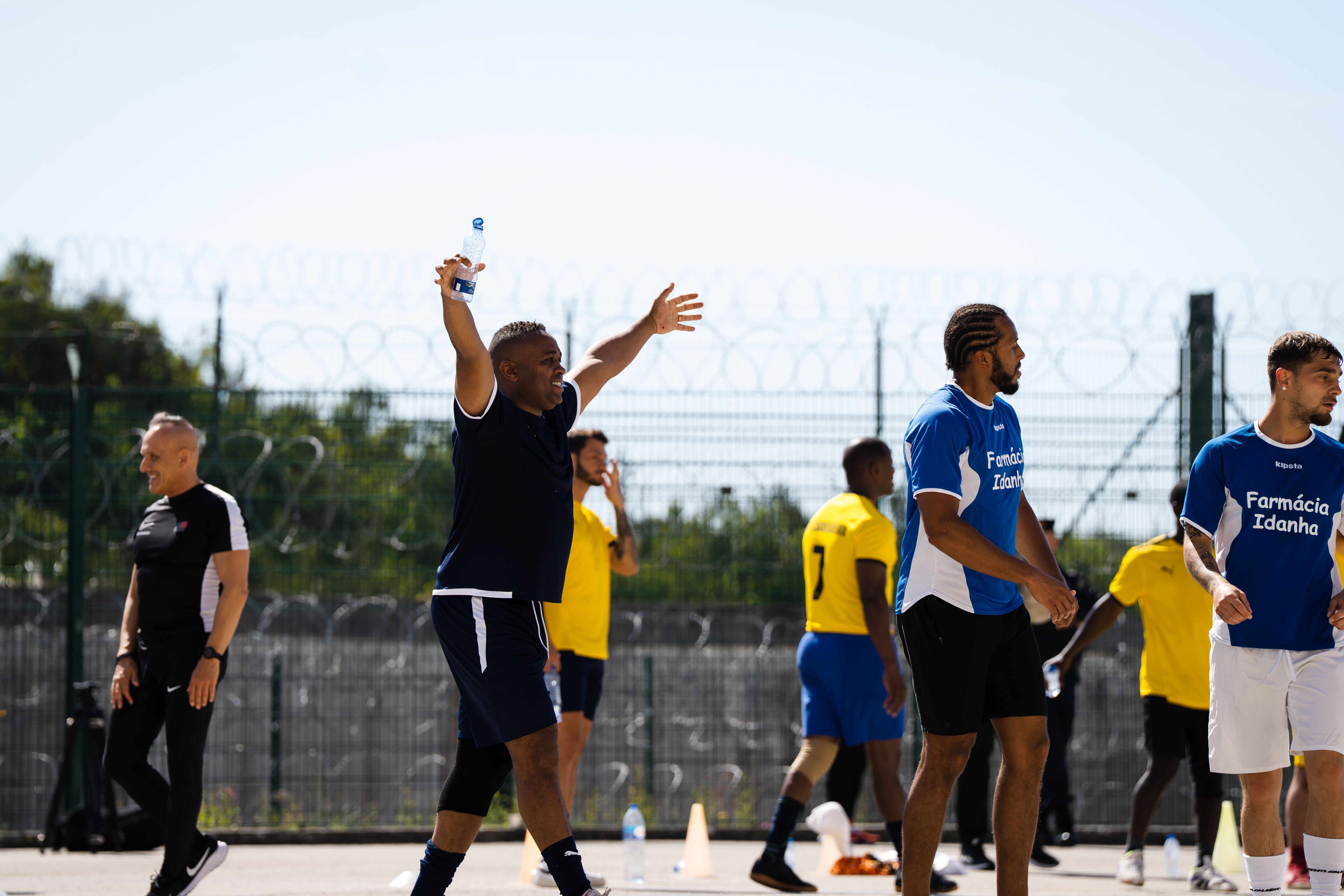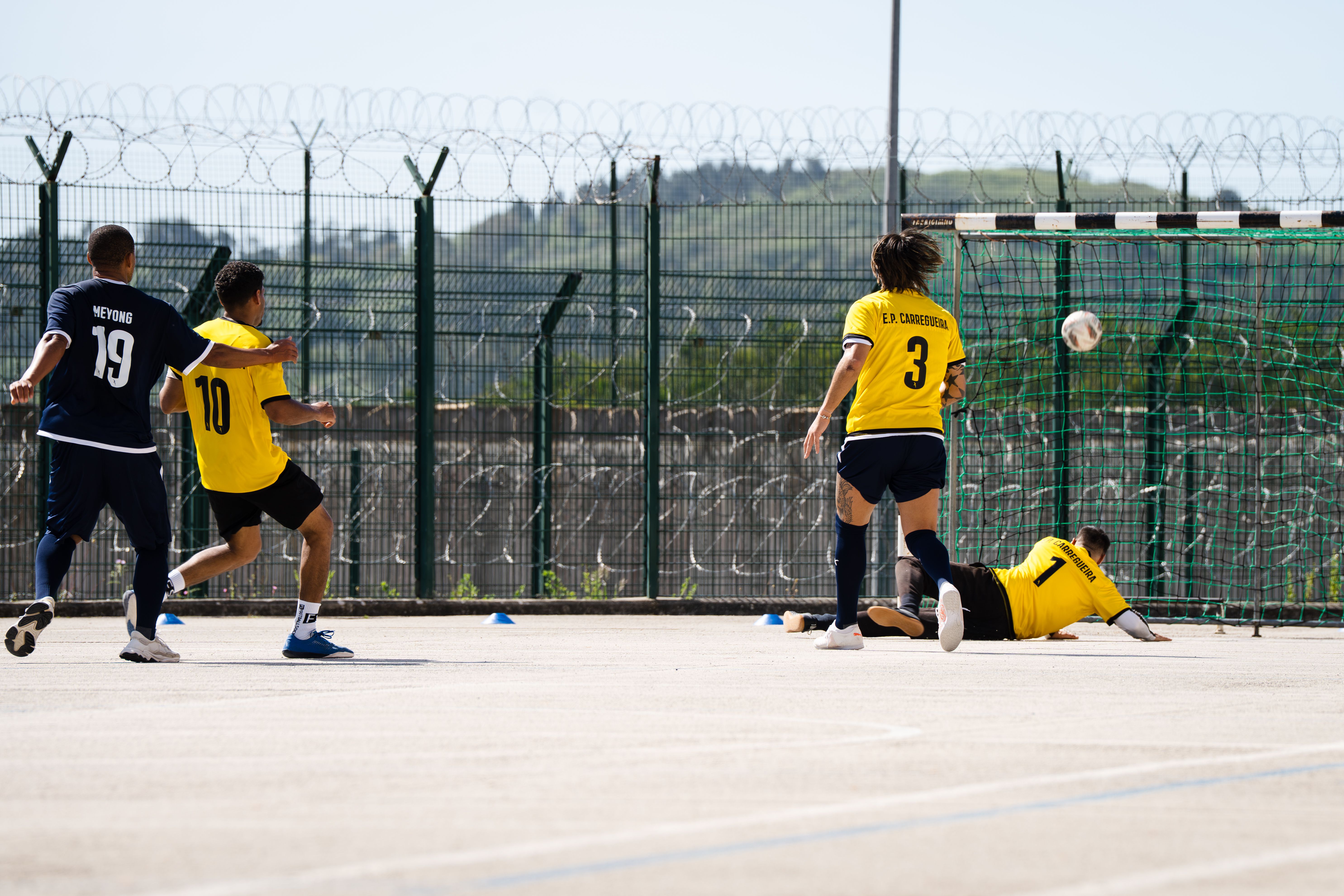 Jorge Andrade, Edinho, Carlos Fernandes, Meyong e Kléber, embaixadores da Liga Portugal, juntaram-se para suar a camisola, talvez mais do que esperavam, numa iniciativa da Fundação do Futebol, no Estabelecimento Prisional da Carregueira, nos arredores de Lisboa, para um jogo com uma seleção de reclusos. Um projeto piloto, que a Liga pretende replicar noutros estabelecimentos.