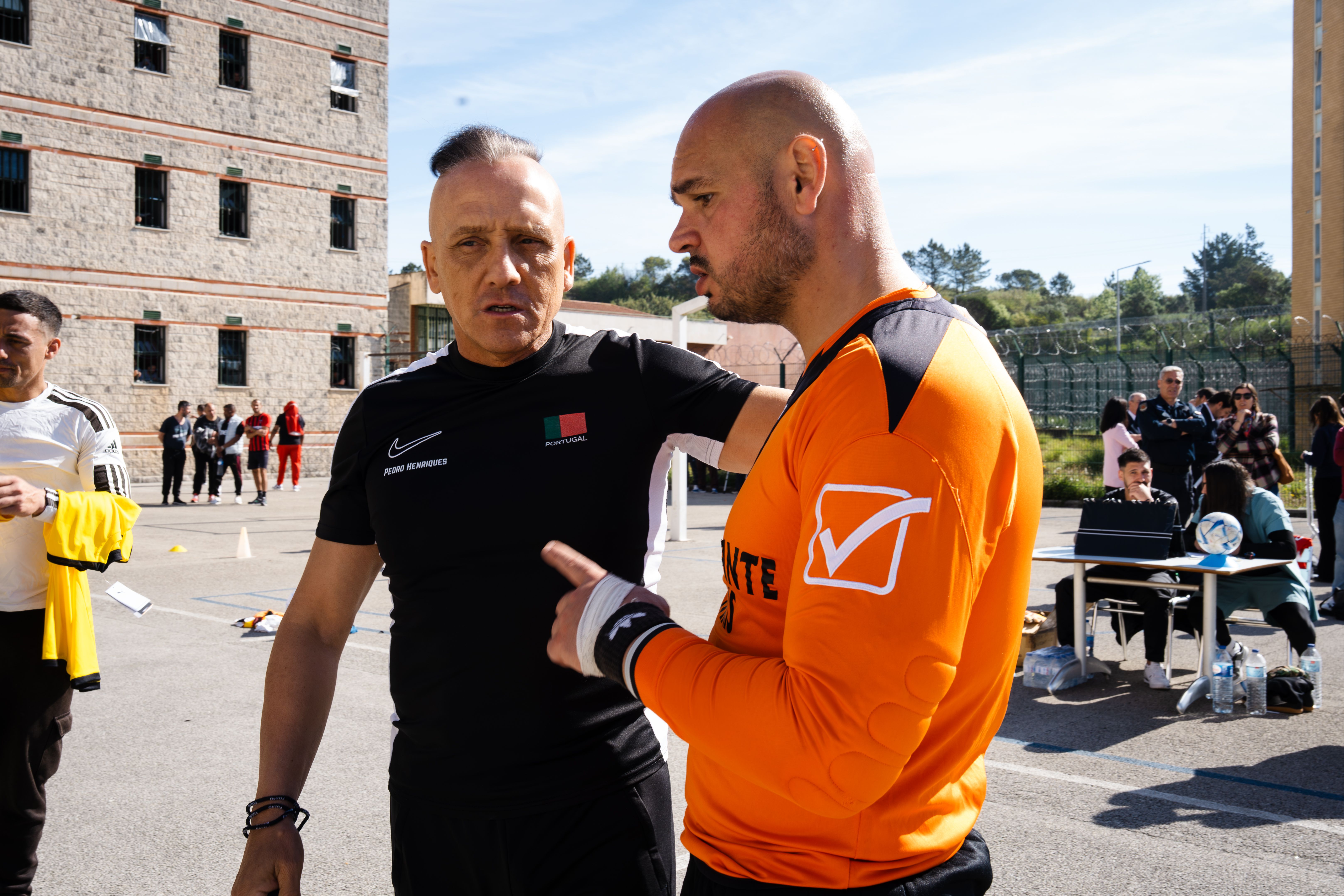 Pedro Henriques, que correu quilómetros na linha, estava com emoções à flor da pele: «A Liga está a fazer aqui um teste piloto no sentido de poder vir a estabelecer um protocolo, mas para mim é a quarta vez. Já dei palestras, fiz outro jogo. Temos este dever e esta obrigação de estar presentes e ajudar. Saio daqui sempre de alma e de coração cheio, ou seja, os meus problemas não existem, há problemas muito maiores acima de nós. Destaco o grande fair-play que toda a gente mostrou, que os reclusos mostraram, e sobretudo o compromisso, porque eles sabem que se nós dizemos que voltamos, nós voltamos, e para eles isso tem valor - é muito importante para que possam levar estes valores para a vida. Acho que porque é um dia muito cheio, é uma manhã muito cheia, e eu estou muito emocionado com isto.»