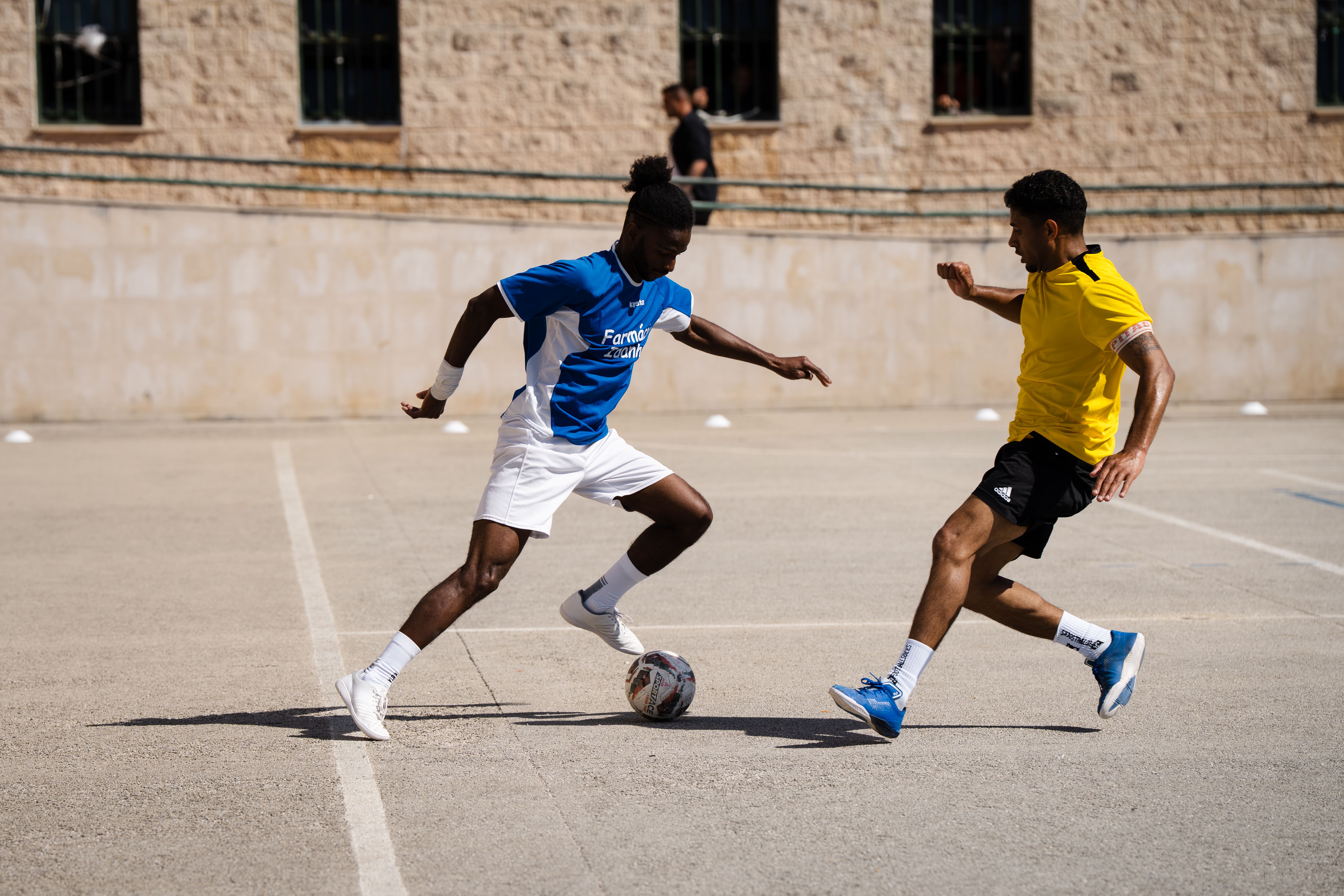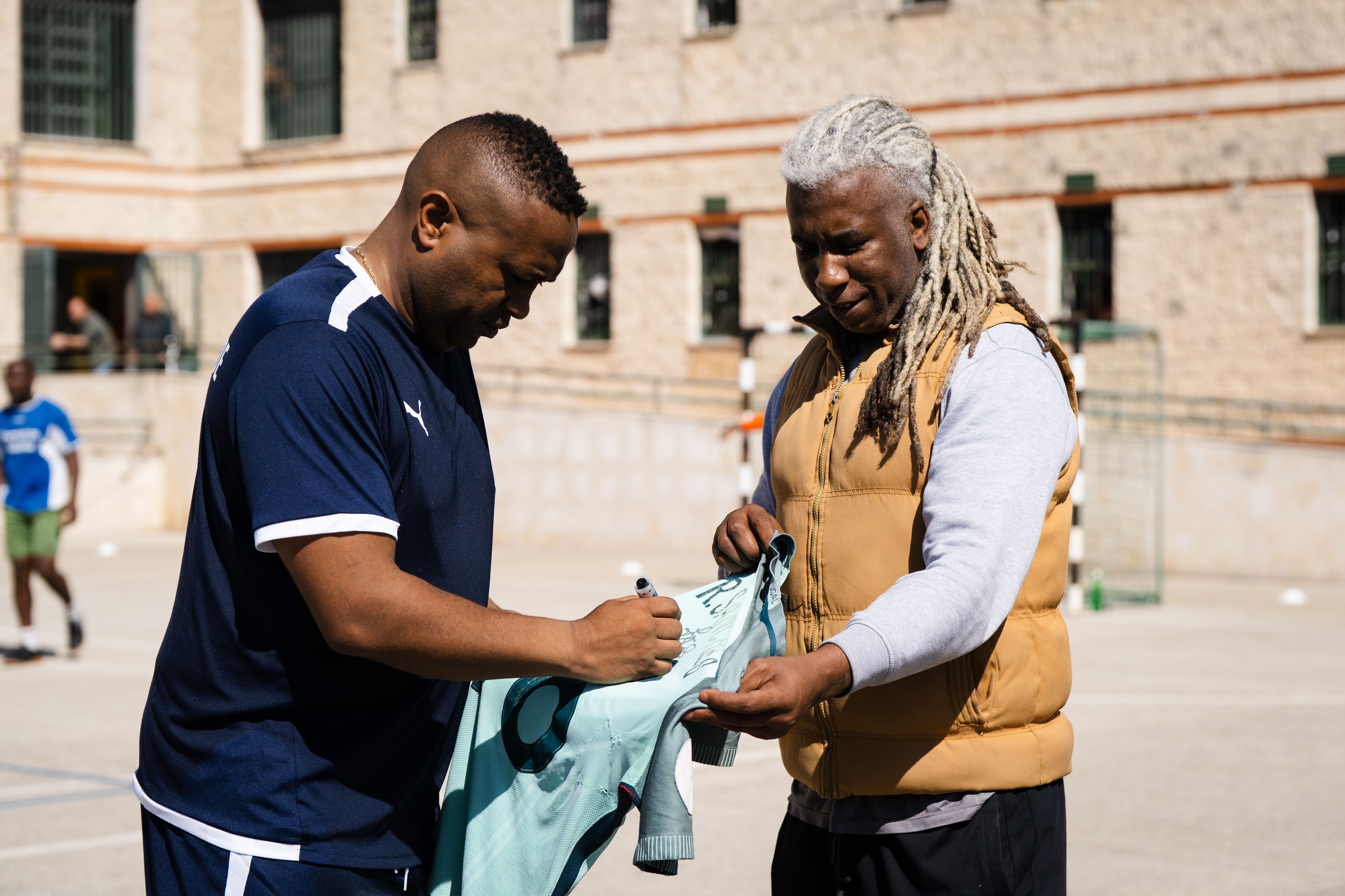 A iniciativa - ‘Futebol sem Muros’ -, em preparação há três meses, tem um objetivo bem claro: usar o desporto como ferramenta de reintegração social dentro do sistema prisional e correu de tal forma bem que o árbitro Pedro Henriques, que já teve outras iniciativas no estabelecimento, mostrou um cartão branco a todos, antes de a partida fechar com um 6-3 para a equipa onde ficaram Jorge Andrade e Meyong. Um gesto ancorado numa simbologia fácil de entender: integração. No final, autógrafos para muitos e memórias para vários dias.