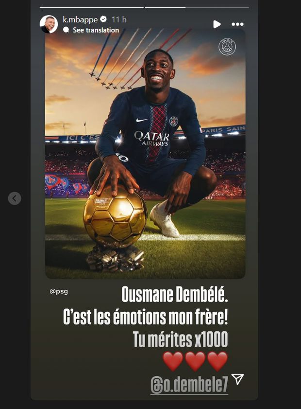 Após o triunfo da noite passada, Dembélé publicou uma mensagem na sua conta pessoal do Instagram: "Muita alegria, orgulho e emoção. Um sonho tornado realidade. Obrigado a todos os que sempre me apoiaram nesta jornada".