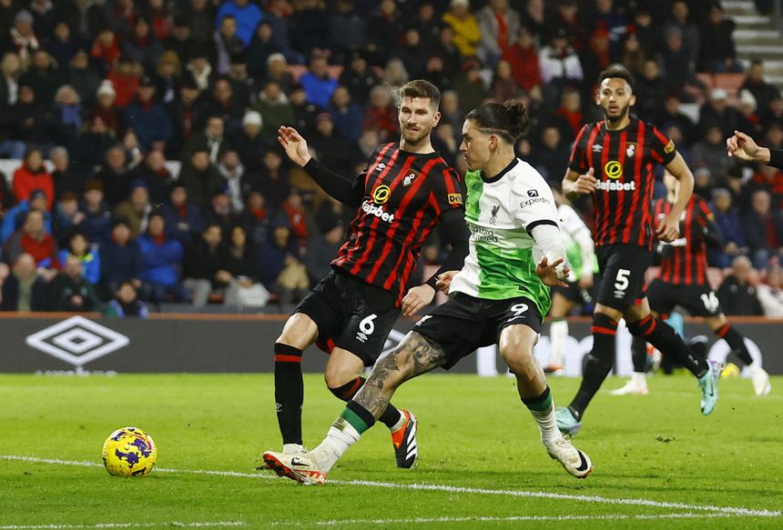 O Liverpool goleou o Bournemouth, por 4-0, em jogo da 21.ª jornada da Premier League, graças a um bis de Diogo Jota e outro de Darwin Núñez.