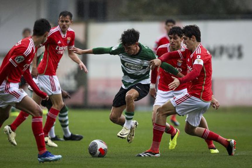 Foi o Sporting a entrar mais forte no encontro, mas as incursões à área encarnada não se traduziam em ocasiões de perigo e o Benfica foi crescendo à medida que dispunha das melhores oportunidades do primeiro tempo. Paulo Okon, aos 13’, com um cabeceamento, acertou na trave na baliza leonina, e João Rêgo, ao minuto 17, viu Diogo Clara negar-lhe o golo, com uma excelente defesa.