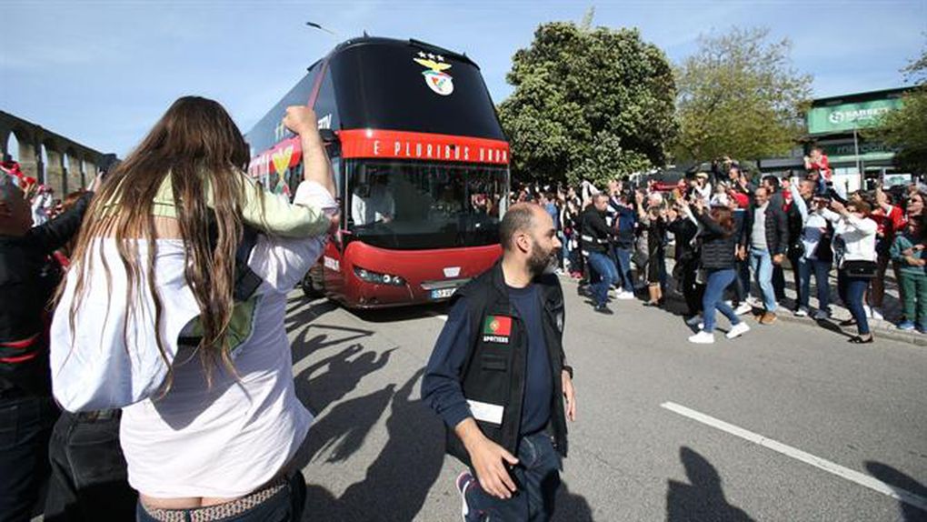 Florentino Luís filmou tudo da parte de dentro do autocarro e partilhou a euforia encarnada antes do jogo da 26.ª jornada.