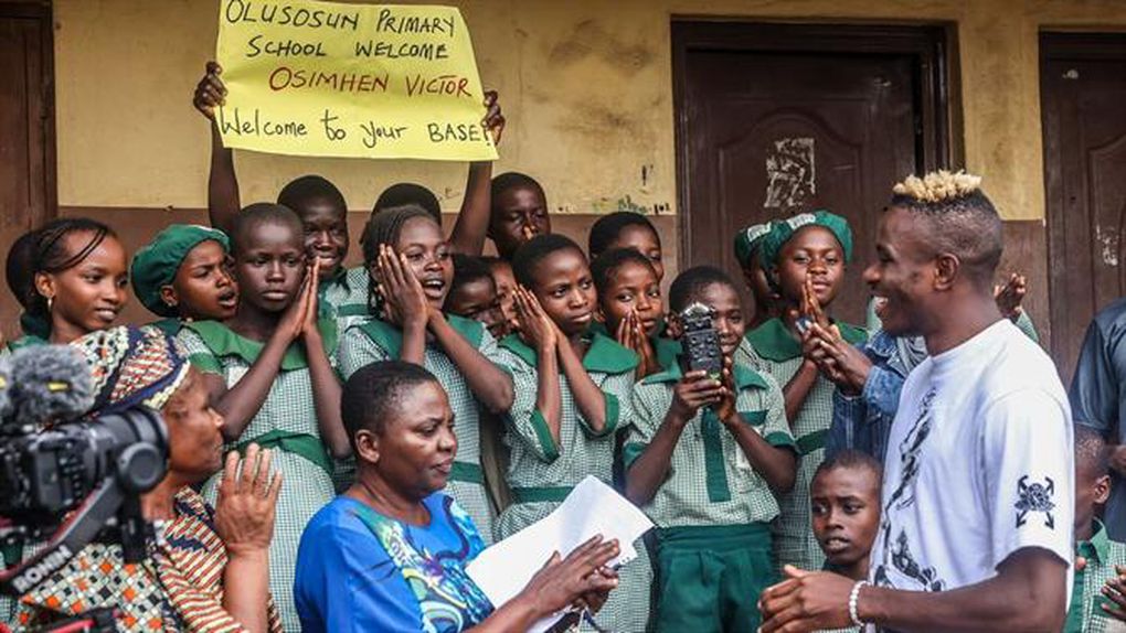 Emocional, também, a visita de Victor Osimhen à sua escola do ensino básico, onde aprendeu a ler e a escrever, e foi recebido com as crianças com aquele brilho nos olhos e uma alegria genuína que palavra alguma poderá descrever com acuidade, e sem preço.