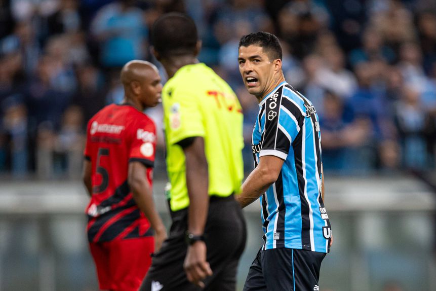No intervalo do jogo entre o Grêmio e o Athlético Paranaense, Luis Suarez, ponta de lança do ‘Tricolor Gaúcho’, foi apanhado pelas câmaras dos túneis de acesso aos balneários a criticar a arbitragem do jogo de ontem com o extremo Lucas Besozzi.