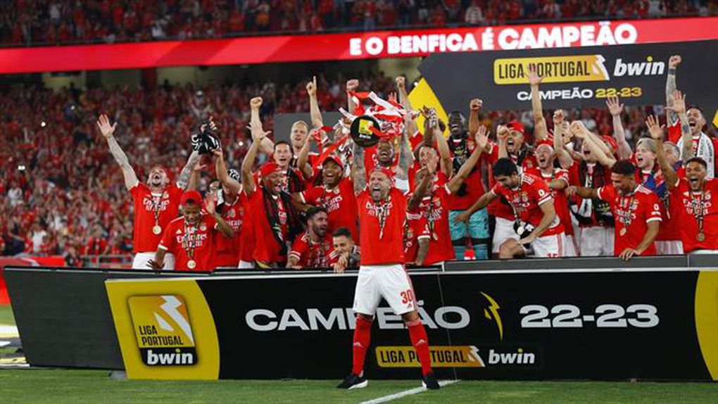 O Benfica sagrou-se campeão nacional 2022/2023 depois de ter vencido o Santa Clara por 3-0 esta tarde, na Luz, com golos de Gonçalo Ramos (7’), Rafa (28’) e Grimaldo (59’, g.p.), e cumpriu o destino que há tanto parecia prometido mas que foi sucessivamente sendo adiado nas últimas semanas, à medida que o FC Porto ia encurtando as distâncias que lhe permitiram entrar nesta última jornada com apenas menos dois pontos que os encarnados.
