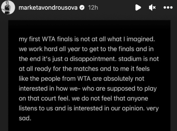 Wimbledon champion Marketa Vondrousova uses her Instagram again, joins Sabalenka in critics about the conditions at the @WTAFinals.