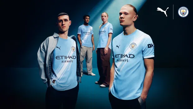 O Manchester City revelou esta terça-feira o equipamento principal para a época 2025. A cor dominante será naturalmente o azul celeste, com a inclusão de uma faixa diagonal em branco, que historicamente fazia parte dos uniformes do clube inglês na década de 70.