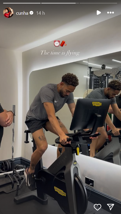 Matheus Cunha, avançado do Manchester United que se lesionou antes da paragem competitiva, mostrou nas redes sociais como está a decorrer a recuperação.