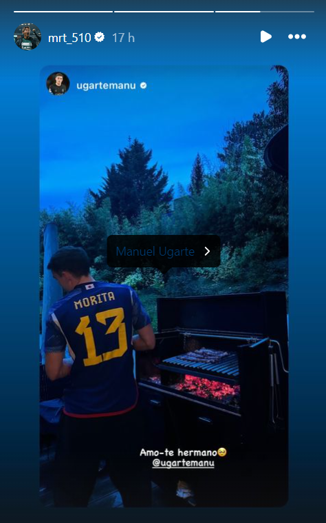Médio do PSG vestiu camisola de Morita (Instagram/Manuel Ugarte)