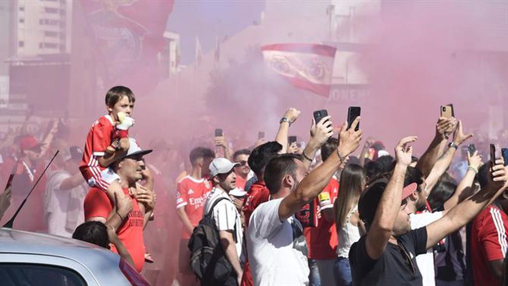 Milhares de pessoas em festa receberam o autocarro do Benfica junto ao estádio do Portimonense, no Algarve, onde o Benfica vai defrontar, este sábado, a equipa de Paulo Sérgio.