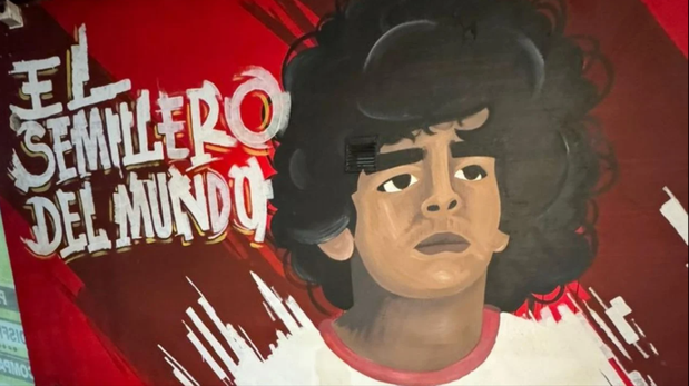 O mural dedicado a Maradona foi ideia de Simón del Pino, professor de Educação Física do referido centro e ex-jogador, que contou com o artista plástico Facundo Opioides para pôr mãos à obra.