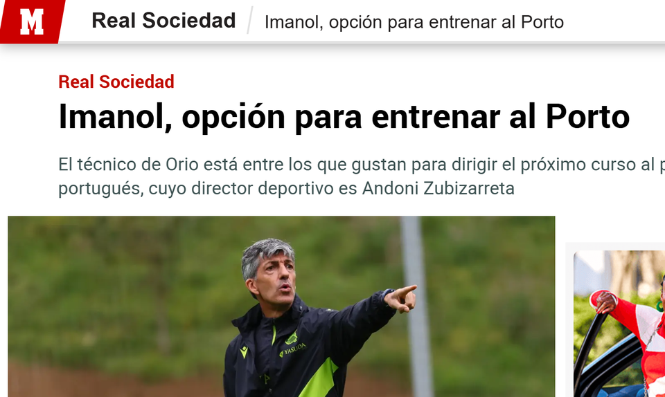 «A opção pelo técnico de Orihuela é uma das mais populares no clube português, cujo diretor desportivo é Andoni Zubizarreta», nota o jornal, que destaca «o grande trabalho de Imanol nos seis anos e meio na Real, tanto na LaLiga, com a conquista da Taça e as cinco passagens pela Europa, como nos torneios continentais em que a equipa txuriurdin tem participado, especialmente na última Liga dos Campeões, não passou despercebido e vários clubes de topo estão a considerar a opção do jogador de Orio para ocupar o seu banco na próxima época.»
