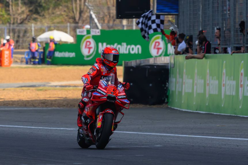 Em outubro do ano passado, Márquez sonhava com o triunfo em Buriram, mas o circuito tailandês revelou-se traiçoeiro e o espanhol acabou por cair. Uma desilusão para muitos fãs do ainda piloto da Gresini e em especial para um adepto local do motociclismo que apareceu nos ecrãs da transmissão de mãos na cara a chorar.