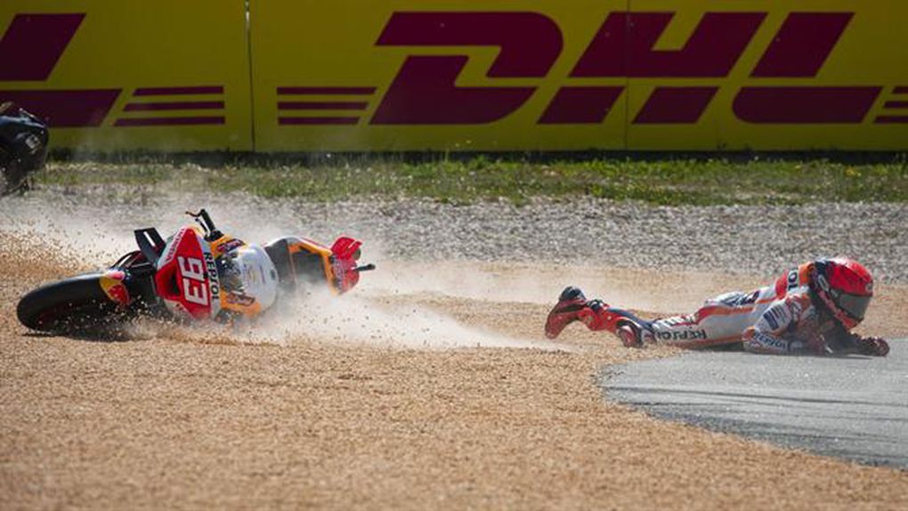 O choque com Miguel Oliveira, em Portimão, deixou Márquez com uma fratura no polegar da mão direita e uma punição de duas voltas longas para o GP da Argentina, no início de abril.