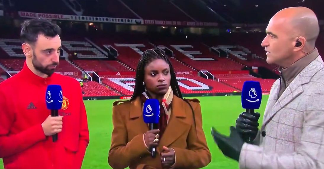 Strange moment to see the Portugal manager Roberto Martinez asking questions of Bruno Fernandes after United’s win tonight. Then, Evra will be Evra… pic.twitter.com/ZLrXSc1XKJ
