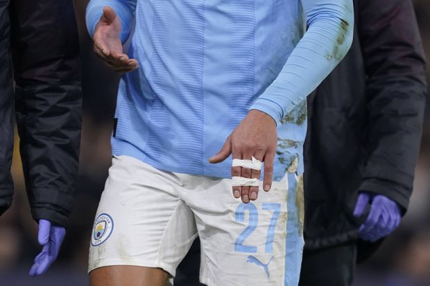 O dedo de Matheus Nunes depois de voltar ao lugar certo (IMAGO)